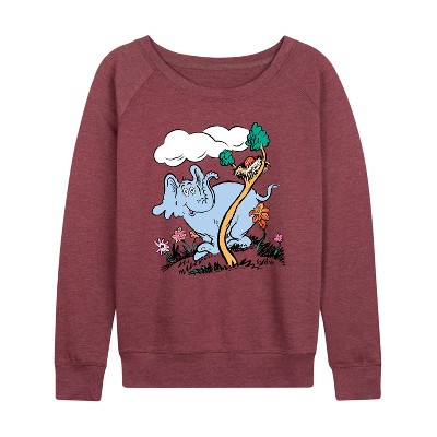 Women's - Dr. Seuss - Lightweight French Terry Wide Neck Long Sleeve Graphic Shirt