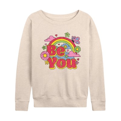 Women's - Instant Message - Be You Lightweight French Terry Wide Neck Long Sleeve Graphic Shirt