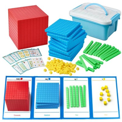 Etokfoks Base Ten Blocks Kit 143 pcs Plastic Math Manipulatives Counting Cubes Place Value Blocks Early Math Learning for Kids 1st Grade