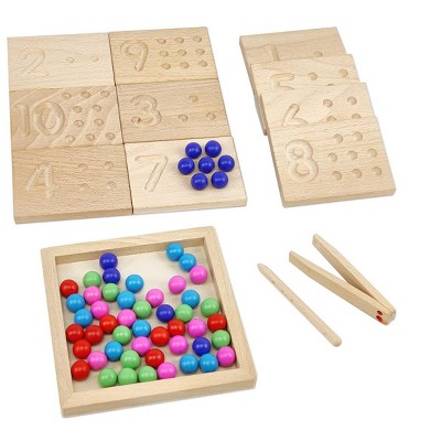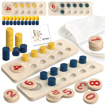 Etokfoks Montessori Wooden Number Blocks and Counting Peg Boards 10 Piece Set Educational Math Manipulatives for Kids Ages 3 6