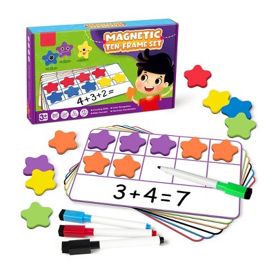 Etokfoks Magnetic Ten Frame Set 5 Frames with 55 Discs for Math Skill Development Counting Addition Subtraction Multiplication 1 Set