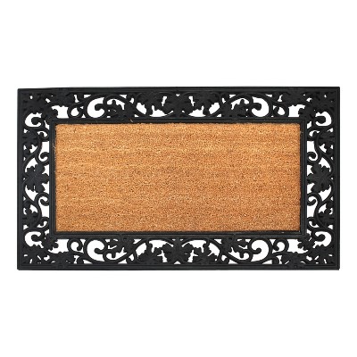 A1HC Ornate Rubber Coir Door Mat 23" x 38" Outdoor Front Door Entryway Mat with Non-Slip Backing