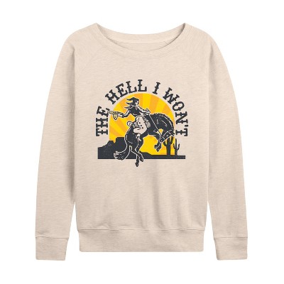 Women's - Instant Message - The Hell I Wont Cowgirl Lightweight French Terry Wide Neck Long Sleeve Graphic Shirt