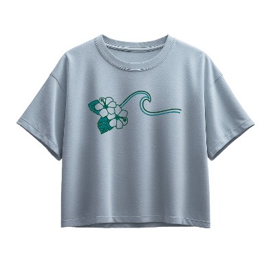 Girls' - Instant Message - Hibiscus and Wave Short Sleeve Boxy Graphic T-Shirt