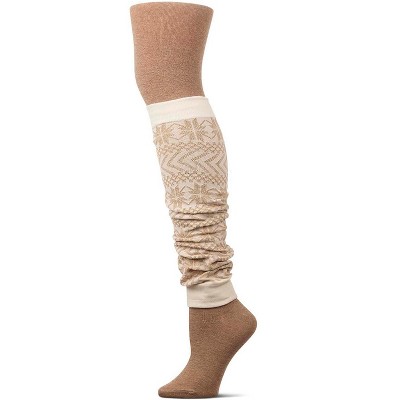 Memoi Snowflake Legwarmer/Flatknit Cotton Blend Sweater Tights