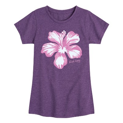 Girls' - Instant Message - Think Happy Hibiscus Fitted Short Sleeve Graphic T-Shirt