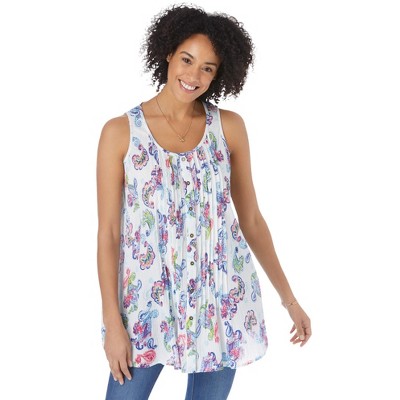 Roaman's Plus Size Ribbed Crewneck Sequin Tank