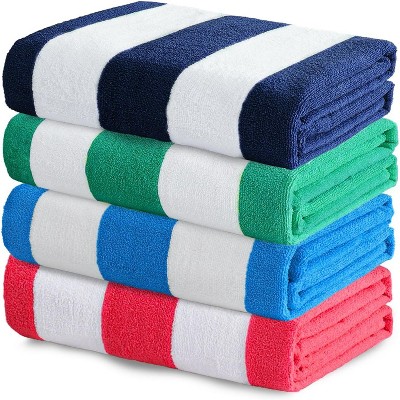 4 Pack Large Microfiber Striped Beach Towels, 30x60 Inches, Navy/Blue/Red/Caribbean Green