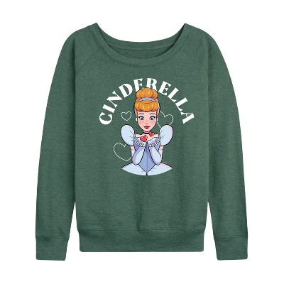 Women's - Disney Princess - Cinderella Kiss Lightweight French Terry Wide Neck Long Sleeve Graphic Shirt