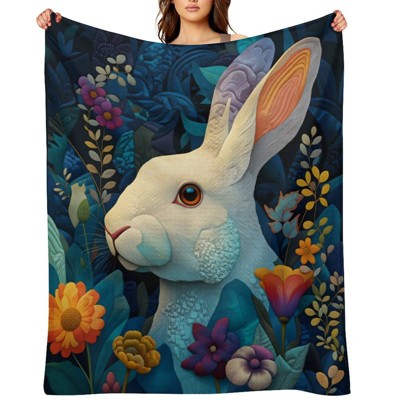 Boho Artistic Easter Bunny Flannel Blanket, Cozy Warm Throw for Spring Snuggling & Lounging 60x80 inches