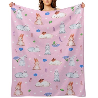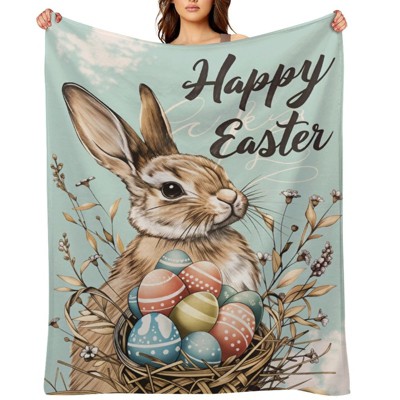 Easter Gift Flannel Fleece Throw Blanket- Cute Rabbit Mother's Day Ultra Soft Polyester Blanket 60x80 inches