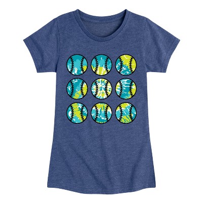 Girls' - Instant Message - Tie Dye Baseball Grid Fitted Short Sleeve Graphic T-Shirt