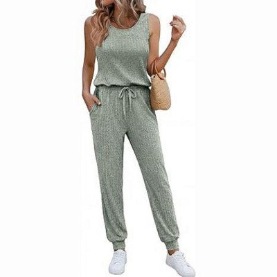 Ekouaer Jumpsuits for Women Casual Summer Sleeveless Ribbed One Piece Romper Dressy Vacation Clothes Travel Outfits