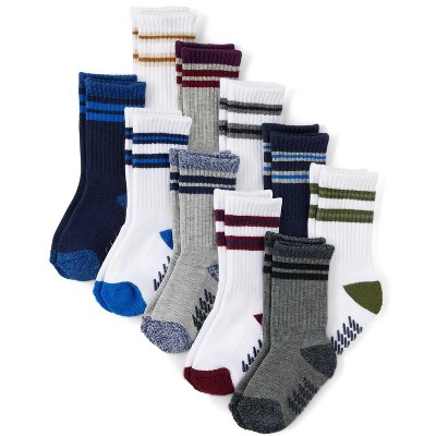 The Children's Place Toddler Boys Striped Cushioned Crew Socks 10-Pack