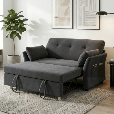56.9" Loveseat Sofa Pull-out Sofa Bed Sleeper Sofa with Reversible Backrest Cushion, Two USB Ports