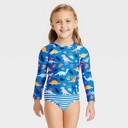 Andy & Evan Toddler Short Sleeve Surfing Dino Graphic Rash Guard Set
