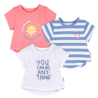 Gerber Baby and Toddler Girls' Short Sleeve T-Shirts, 3-Pack
