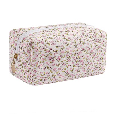 Narwey 2Pcs Quilted Cotton Large Travel Coquette Floral Makeup Bag - Cosmetic & Toiletry Bag for Women & Girls