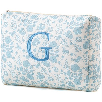 Narwey Initial Quilted Makeup Bag, Cotton Large Travel Make up Bag, Cute Floral Coquette Cosmetic Bag Toiletry Bag for Women Girls G