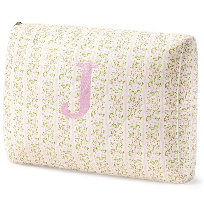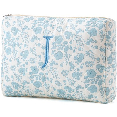Narwey Initial Quilted Makeup Bag, Cotton Large Travel Makeup Bag, Cute Floral Coquette Make up Bag Cosmetic Bag Toiletry Bag for Women Girls J
