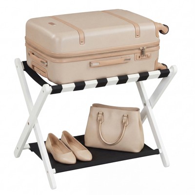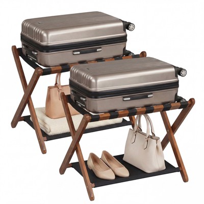 Costway 1/2 PCS Luggage Rack, Solid Rubberwood Suitcase Stand with Nylon Shelves, Portable Black + White/Brown/Black