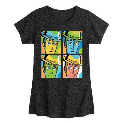 Girls' - Toy Story - Woody Grid Fitted Short Sleeve Graphic T-Shirt