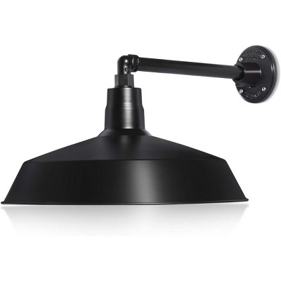 17in. Satin Black Outdoor Gooseneck Barn Light Fixture with Long Extension Arm - Wall Sconce Farmhouse 9W 900lm A19 LED Bulb (5000K Cool White)