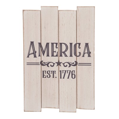 Transpac Wood 11.75" White 4th of July Patriotic America Slat Decor