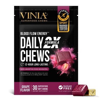 VINIA Resveratrol Heart Chews 30ct, Grape Flavor, Nitric Oxide & Blood Flow Support Supplement, Sugar Free, Non-GMO, Gluten Free