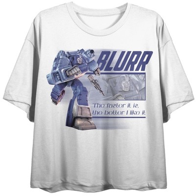 Transformers Blurr Women’s White Crew Neck Short Sleeve Crop Top