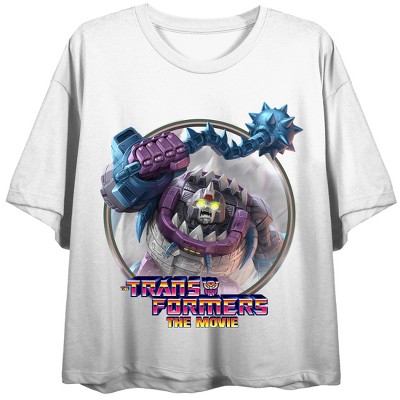 Transformers Gnaw Circle Frame Women’s White Crew Neck Short Sleeve Crop Top