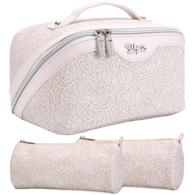 Narway Travel Makeup Bags Cosmetic Organizer Bag: 3 Pcs Set Large Capacity Make up Bag with Compartments (B-White)