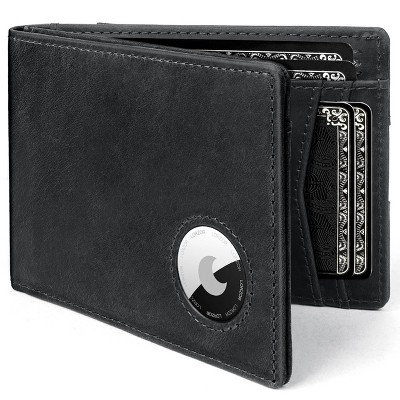 Mens Wallet with AirTag Holder, Bifold Full Grain Leather AirTag Wallet with ID Window RFID Blocking