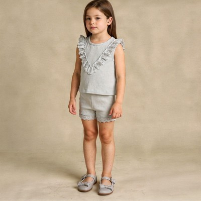 Organic Ruffle Top & Shorts Set - Fog