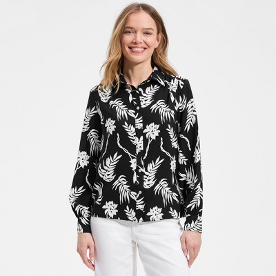 Woman Within Perfect Printed Three-Quarter Sleeve V-Neck Tee