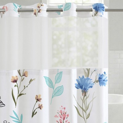 Americanflat 72x75 Hookless Shower Curtain - Water-Resistant Floral Shower Curtain with Sheer Panel, Snap-In Liner, and Grommets - 100% Polyester