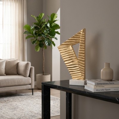 Sculpture Aluminum Abstract Geometric Design with Marble Base For Modern Home Office Bedroom Living Room Decor - 18" Gold & Metallic