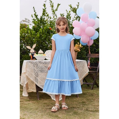 Arshiner Girls Summer Maxi Dresses Short Sleeve Casual Flowy Tiered Dress with Pockets for 4-14 Years