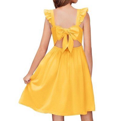 Arshiner Girls Summer Dresses Square Neck Ruffle Sleeve Tie Back A-Line Swing Casual Midi Dress with Pockets