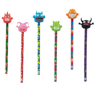 Monster Eraser Topper Pencils (6 Pack) - Creepy Designs, Fun Erasers, #2 HB Lead