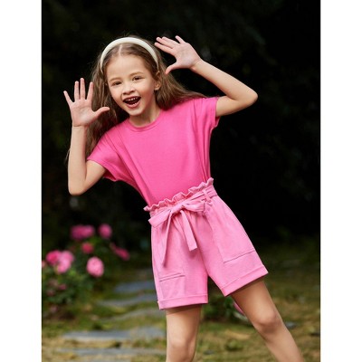 Arshiner Girls 2 Piece Summer Outfits Drop Shoulder Batwing Tops Paperbag Waist Shorts 6-14