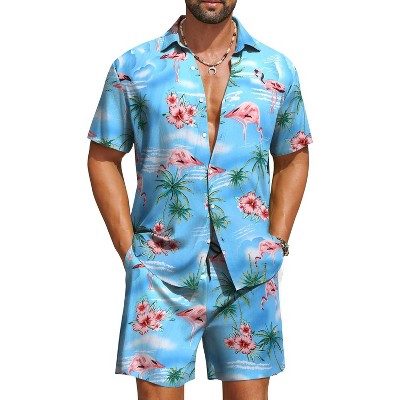 COOFANDY Men's Hawaiian Matching Set Summer Beach 2 Piece Outfits Flower Button Down Shirts and Shorts Vacation Outfits