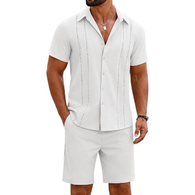 COOFANDY Men's 2 Piece Outfits Sets Casual Short Sleeve Button Down Knit Shirt and Shorts Sets Summer Beach Outfits