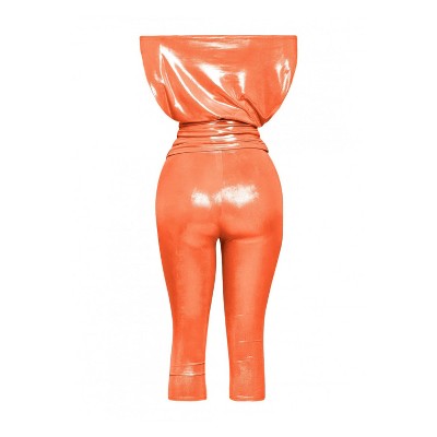 Slickblue Women’s Sleeveless Asymmetrical Shimmer Top and Capri Pants Set, Two Piece Casual Outfit, Tangerine, S-L