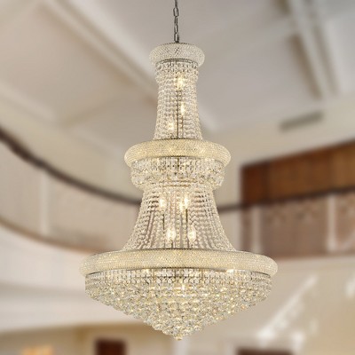 YANSUN 32" French Empire Crystal Chandelier, 27-Light Chrome Ceiling Light, 3000K LED Included, Adjustable Height, Luxury Fixture