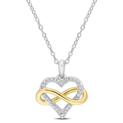 EVERLY JEWELRY | Two Tone Silver 1/5ct Cubic Zirconia Heart & Infinity Pendant & Chain, 18 inc