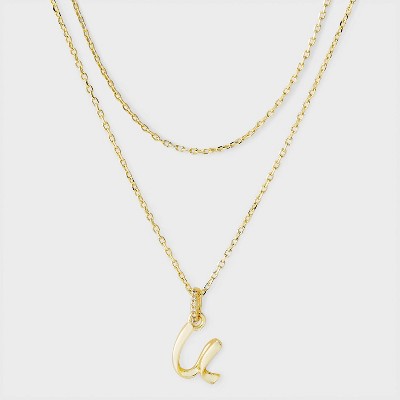 14k Gold Dipped Twist Initial Cubic Zirconia Bail Multi-Strand Necklace - A New Day™ Gold