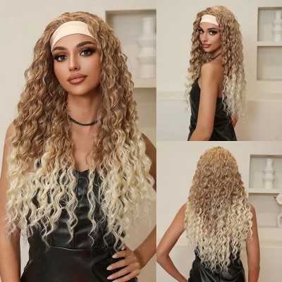 Headband Synthetic Wigs Long Afro Kinky Curly Golden Blonde Platinum Ombre Wig for Women Use Water Wave Wig Heat Resistant