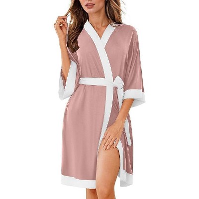 Ekouaer Robes for Women Knee Length Bathrobe Lightweight Robe 3/4 Sleeve Knit Sleepwear with Pockets