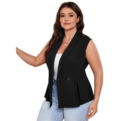 Coolmee Womens Plus Size Peplum Sleeveless Blazer Vest Suit Jacket Shawl Lapel Button Business Casual Blazer